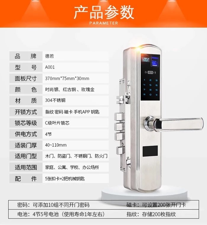 “秦兵马勇”带APP简约指纹锁/光学 半导体两种指纹头可选择